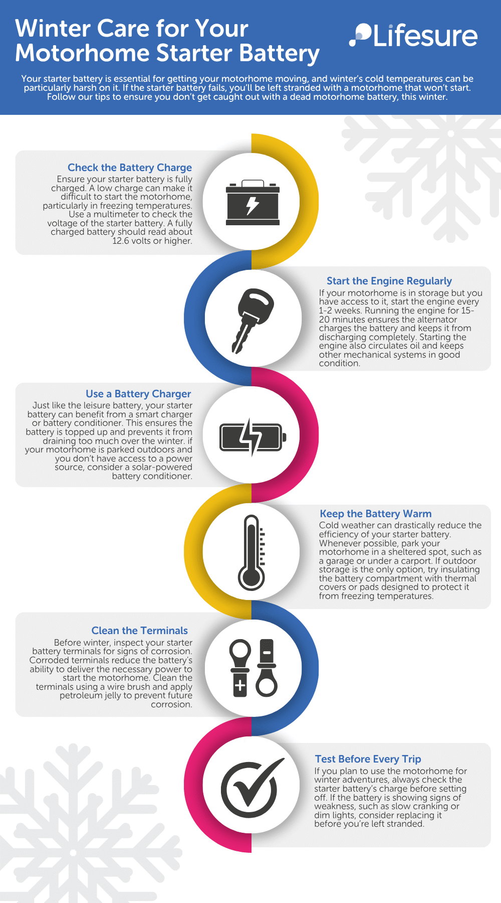 Before we cover winter care tips, it’s important to know the difference between your motorhome's leisure and starter batteries: